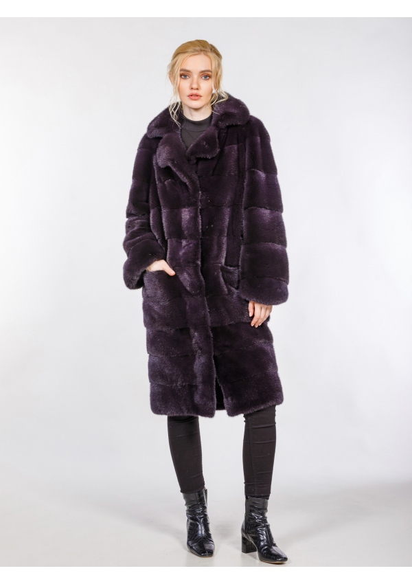 Шуба из меха канадской аукционной норки силуэта кокон (слива)